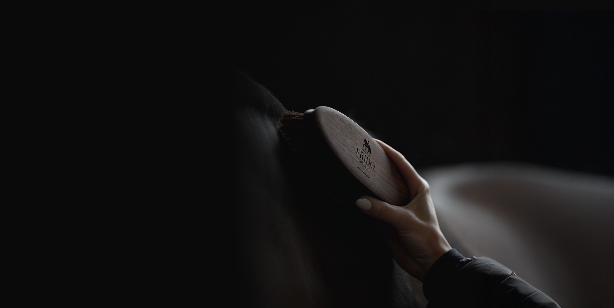 "Als Pferdewirtschaftsmeisterin weiß ich, wie wichtig die feine Kommunikation mit unseren Pferden ist. Sie beginnt bei der täglichen Pflege und endet bei der Handarbeit. Die Bürsten von FRIDO LOVES IT, in Deutschland gemeinsam mit Experten entwickelt, liegen perfekt in der Hand und pflegen das Fell optimal – Premiumqualität, der ich vertraue."