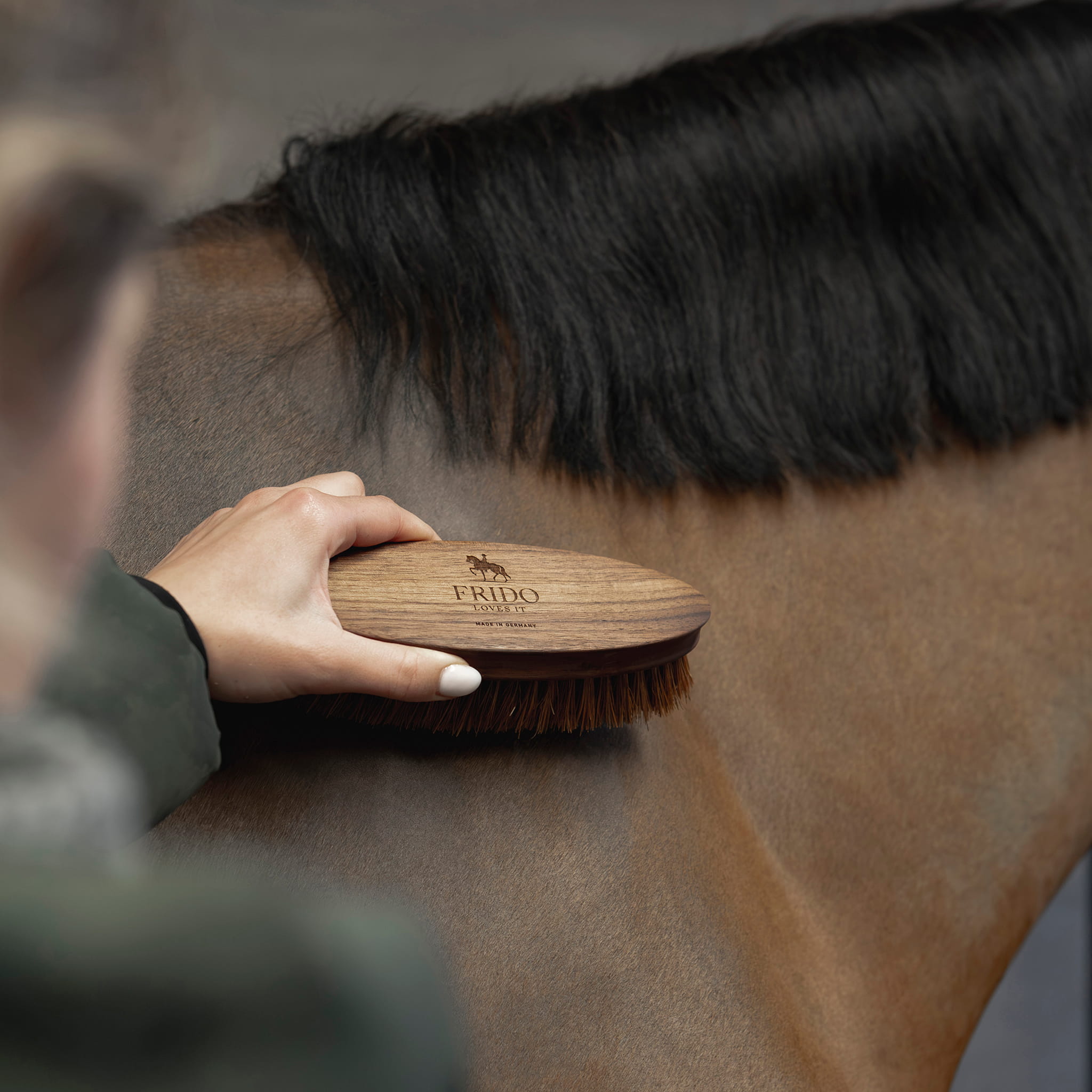 Die Wurzelbürste, hergestellt aus hochwertigem geöltem Nussbaumholz aus dem Schwarzwald, ist der perfekte Helfer für die tägliche Fellpflege. Die robusten Kokosfaser-Borsten reinigen das Fell effektiv, lösen schonend hartnäckigen Schmutz und sind dabei angenehm für das Pferd. Sie ist für den gesamten Körper ideal geeignet. Die Bürste entfernt selbst bei Schimmeln zuverlässig Gelbfärbungen oder Schmutzrückstände, ohne die Verwendung von Wasser oder Shampoo. Ergonomisch geformt und langlebig, ist diese Bürste ein unverzichtbarer Begleiter für gesunde, gepflegte Pferde.